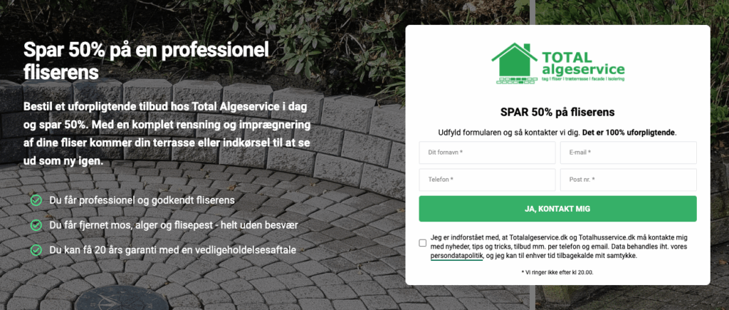 - Erfaring og ekspertise – mange års erfaring med algebehandling og rens i hele Danmark.
